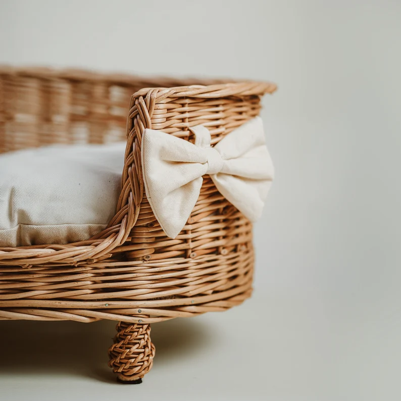 Wicker dog & cat bed, accessories for pet, ecological bed for animals, Natural wicker color with cotton cozy pillow, dog and cat home / bed